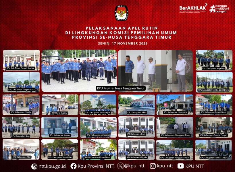 Kupang, ntt.kpu.go.id — Komisi Pemilihan Umum Provinsi Nusa Tenggara Timur melaksanakan Apel Pagi pada Senin (17/11) di halaman Kantor KPU NTT. Bertindak sebagai pembina apel yaitu Anggota KPU Provinsi NTT Baharudin Hamzah, yang membawahi Divisi Sosialisasi, Pendidikan Pemilih, Partisipasi Masyarakat, dan SDM. Apel pagi dihadiri oleh Ketua KPU NTT Jemris Fointuna, Anggota KPU NTT Lodowyk Fredrik, serta Plh. Sekretaris KPU NTT Andrew S. N. Kette, bersama para pejabat struktural, pejabat fungsional, dan seluruh staf sekretariat KPU NTT. Dalam amanatnya, Baharudin Hamzah menyampaikan pesan penting mengenai perlunya setiap divisi untuk mengembangkan kreativitas dan inovasi, terutama dalam periode non-tahapan. Ia menekankan bahwa penyelenggara pemilu tidak hanya bekerja pada saat tahapan berlangsung, tetapi juga harus memanfaatkan masa jeda untuk memperkuat kapasitas kelembagaan dan memperkaya program kerja. “Kreativitas dan inovasi harus menjadi budaya kerja kita. Setiap divisi memiliki ruang untuk mengembangkan ide, memperbaiki pola kerja, dan menghasilkan terobosan yang memberi nilai tambah bagi lembaga,” ujar Baharudin. Ia juga mendorong agar setiap divisi proaktif melihat peluang pengembangan kegiatan, termasuk peningkatan kualitas layanan publik, literasi kepemiluan, serta koordinasi antar divisi. Menurutnya, penguatan kreatifitas di internal lembaga akan berdampak langsung pada kualitas penyelenggaraan pemilu dan pemilihan pada periode mendatang. Selain terkait kinerja kelembagaan, Baharudin juga mengingatkan pentingnya menjaga kesehatan fisik. Mengingat ritme pekerjaan penyelenggara pemilu yang sering kali tinggi dan menuntut kesiapan ekstra, ia meminta seluruh jajaran untuk menerapkan pola hidup sehat dan memperhatikan kondisi tubuh. “Kesehatan adalah modal utama kita. Ritme kerja di penyelenggara pemilu cukup dinamis. Karena itu, mari kita saling mengingatkan dan menjaga kesehatan agar tetap bugar serta siap menjalankan tugas,” tambahnya. Lebih lanjut, Baharudin menyampaikan apresiasi atas kedisiplinan seluruh pegawai yang tetap konsisten mengikuti apel rutin dan menjalankan tugas dengan tanggung jawab. Ia berharap semangat kebersamaan dalam apel pagi dapat terus memperkuat budaya kerja positif di lingkungan KPU Provinsi NTT. Apel pagi ditutup dengan ajakan untuk menjaga sinergi antar divisi dan memperkuat komitmen bersama dalam mendukung tata kelola lembaga yang profesional, adaptif, dan berintegritas. ....