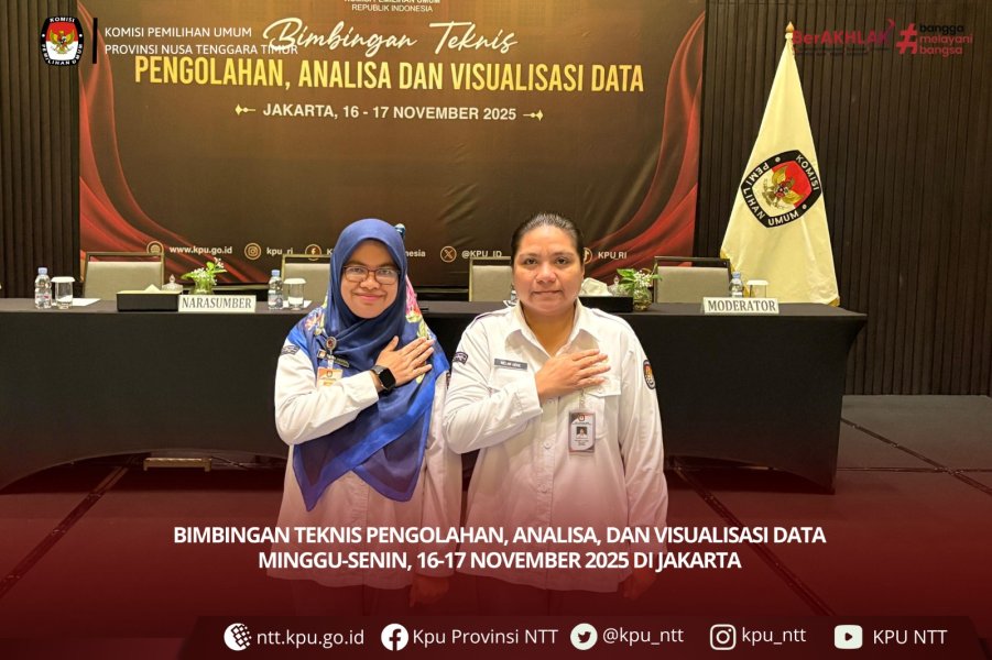 Jakarta, ntt.kpu.go.id — Komisi Pemilihan Umum Provinsi Nusa Tenggara Timur mengikuti kegiatan Bimbingan Teknis (Bimtek) Pengolahan, Analisis, dan Visualisasi Data yang diselenggarakan oleh KPU Republik Indonesia pada 16-17 November 2025. Kegiatan ini berlangsung di Hotel Morrissey, Jakarta, dan diikuti oleh jajaran KPU Provinsi dari seluruh Indonesia. KPU Provinsi NTT menghadirkan dua peserta, yakni Plt. Sekretaris KPU NTT yang juga menjabat sebagai Kepala Bagian Perencanaan, Data dan Informasi, Melanie Sari Willa Hege, serta Operator Data, Tati Haryati Husein. Keikutsertaan keduanya menjadi bagian dari upaya penguatan kapasitas SDM di bidang pengelolaan data kepemiluan untuk mendukung penyelenggaraan Pemilu dan Pemilihan. Bimtek ini menghadirkan narasumber dari Pusat Penelitian dan Pengembangan (Puslitbang) KOMPAS, yang menyampaikan materi mendalam mengenai metodologi analisis data serta pendekatan visualisasi informasi yang efektif, akurat, dan mudah dipahami publik. Para peserta mendapatkan wawasan mengenai bagaimana data kepemiluan dapat diolah dan ditampilkan secara lebih informatif untuk mendukung transparansi publik. Selain sesi materi, peserta juga mengikuti praktik langsung yang mencakup pengolahan data berbasis digital, teknik analisis kuantitatif, penyusunan insight data, penggunaan Google Looker Studio, serta pembuatan dashboard interaktif yang relevan untuk kebutuhan pelaporan dan pengambilan keputusan di lingkungan KPU. Melalui bimtek ini, KPU Provinsi NTT diharapkan semakin siap dalam meningkatkan kualitas pengelolaan data, memperkuat keterbukaan informasi publik, serta mendukung kelancaran dan akuntabilitas tahapan Pemilu dan Pemilihan di masa mendatang. Kegiatan ditutup oleh Kepala Pusat Data dan Informasi KPU RI, Mashur Sampurna Jaya, yang dalam arahannya berharap seluruh peserta dapat menerapkan pengetahuan yang diperoleh serta menularkannya kepada satuan kerja KPU Kabupaten/Kota. Ia menegaskan pentingnya penyajian data yang valid dan terpercaya sebagai bagian dari upaya meningkatkan kepercayaan publik terhadap kinerja KPU. ....