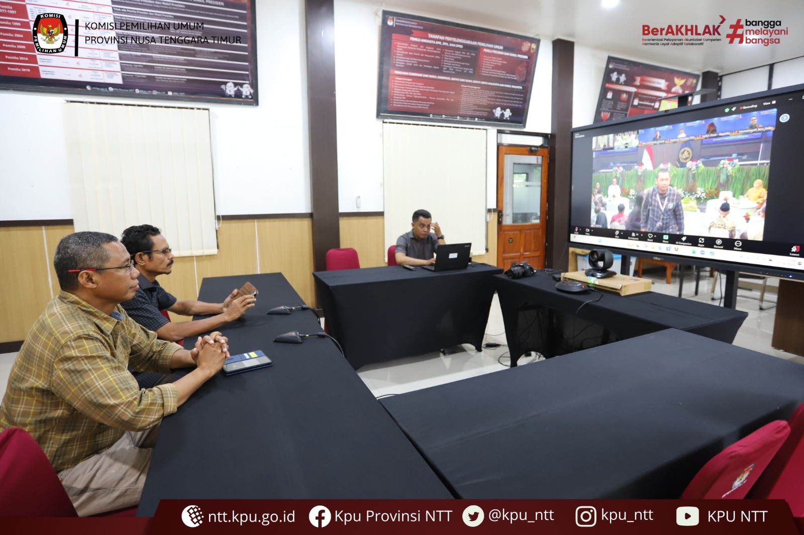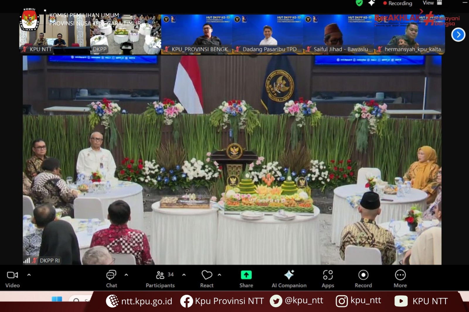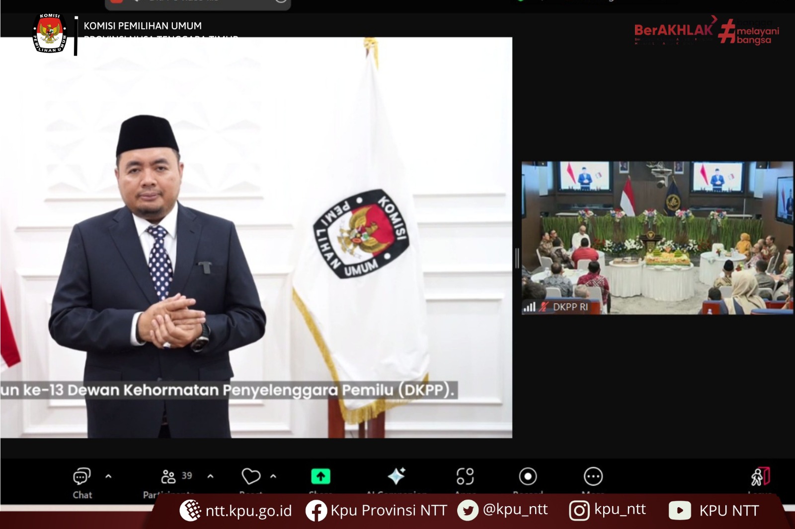 Kupang – Komisioner KPU Provinsi Nusa Tenggara Timur, Baharudin Hamzah dan Lodowyk Fredrik, turut mengikuti secara daring kegiatan peringatan Hari Ulang Tahun ke-13 Dewan Kehormatan Penyelenggara Pemilu (DKPP) RI yang digelar pada Rabu (11/6/25). Peringatan ini menjadi momen penting bagi seluruh penyelenggara Pemilu untuk kembali meneguhkan komitmen terhadap integritas dan etika dalam menjalankan tugas konstitusional.