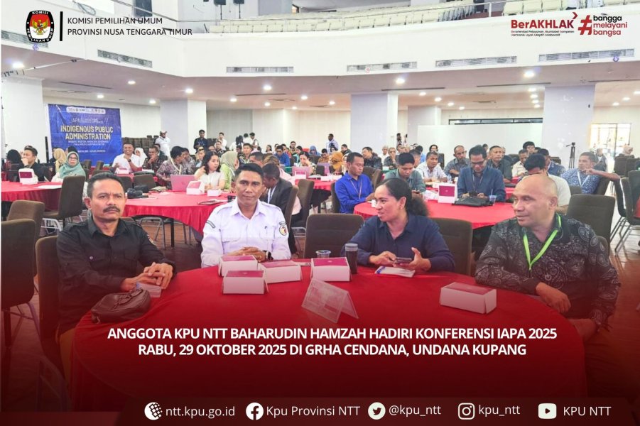Kupang, ntt.kpu.go.id — Anggota Komisi Pemilihan Umum (KPU) Provinsi Nusa Tenggara Timur, Baharudin Hamzah, menghadiri kegiatan “Indonesian Association for Public Administration (IAPA) 2025 Annual Conference and Congress” yang diselenggarakan pada Rabu (29/10) di Grha Cendana, Universitas Nusa Cendana (Undana) Kupang.