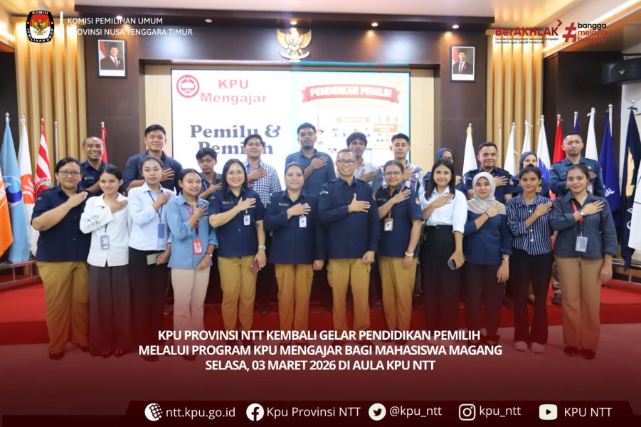 KUPANG,ntt.kpu.go.id-KPU Provinsi Nusa Tenggara Timur kembali gelar Pendidikan Pemilih melalui Program KPU Mengajar, Selasa (3/3) di aula KPU NTT bagi mahasiswa magang dengan narasumber Anggota KPU Provinsi NTT, Lodowyk Fredrik.