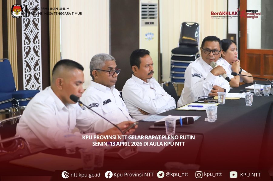 Kupang, ntt.kpu.go.id — Komisi Pemilihan Umum (KPU) Provinsi Nusa Tenggara Timur gelar Rapat Pleno Rutin Senin (13/4/2026) di Aula KPU Provinsi NTT.