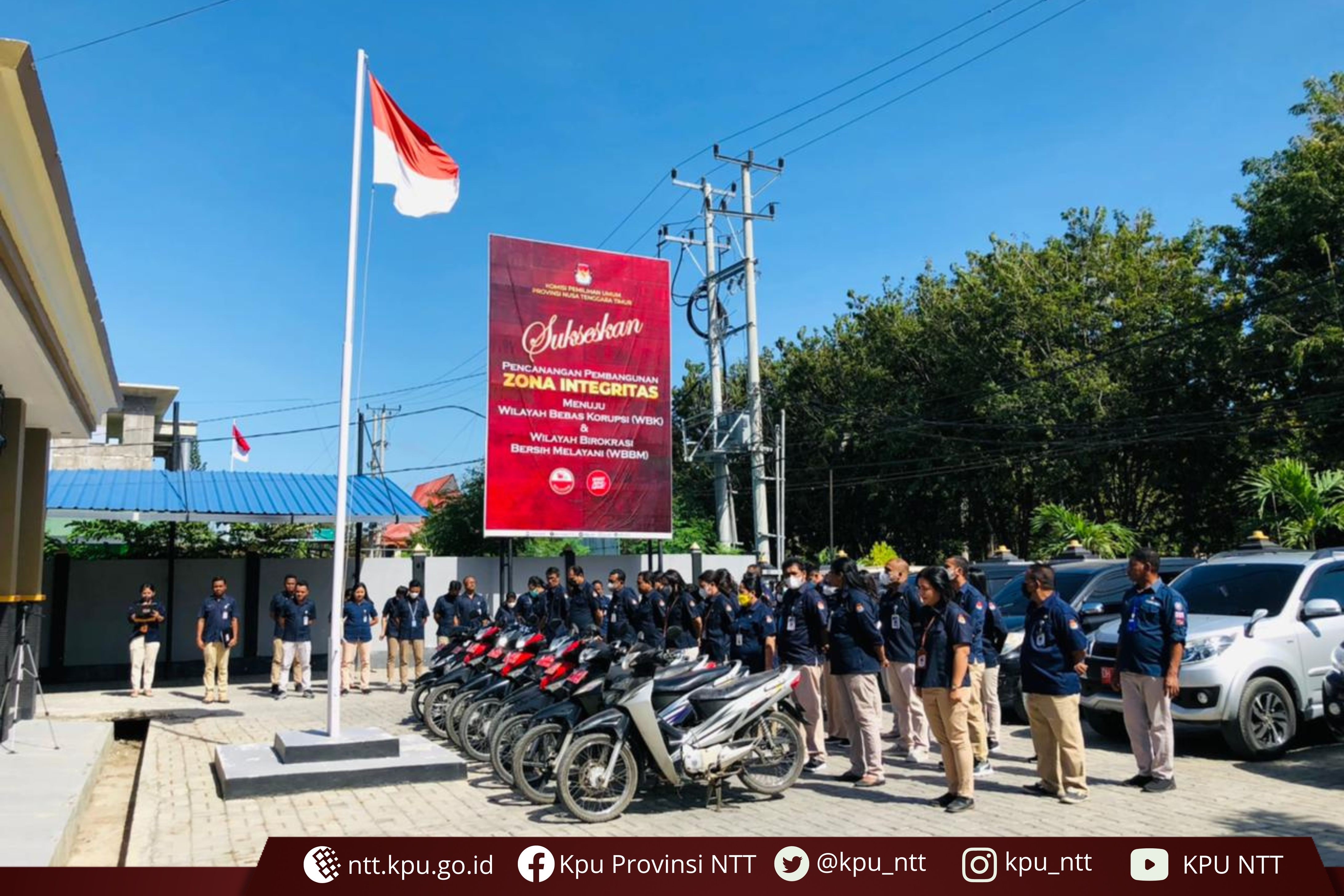 KPU Provinsi NTT melaksanakan Apel Serentak Stock Opname Fisik Aset BMN Semester I Tahun 2022 antara KPU Provinsi dan KPU Kabupaten/Kota se-NTT yang dipimpin langsung oleh Ketua KPU Provinsi NTT Thomas Dohu secara hybrid bertempat dihalaman Kantor KPU Provinsi NTT, Selasa (28/6/2022).