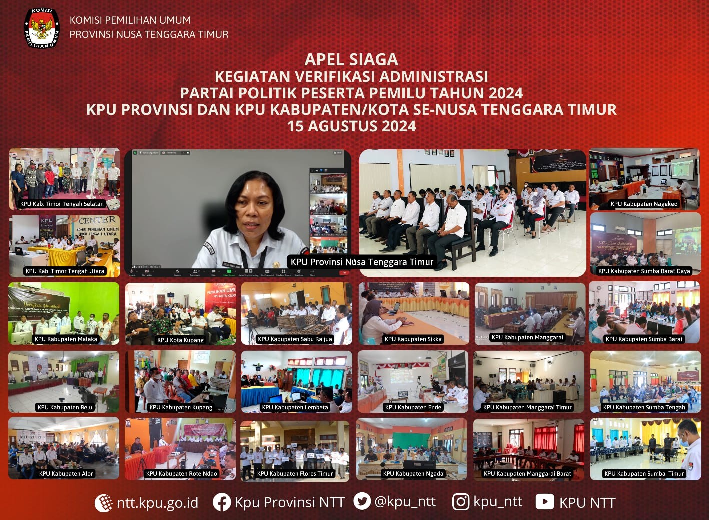 #temanpemilih, senin 15/08/2022, bertempat di Aula KPU KPU Provinsi NTT, Ketua KPU Provinsi NTT Thomas Dohu membuka kegiatan Apel Siaga Kegiatan Verifikasi Administrasi Partai Politik Peserta Pemilu Tahun 2024 KPU Provinsi dan KPU Kabupaten/Kota se-NTT secara daring.