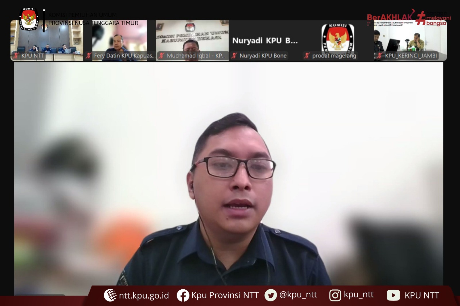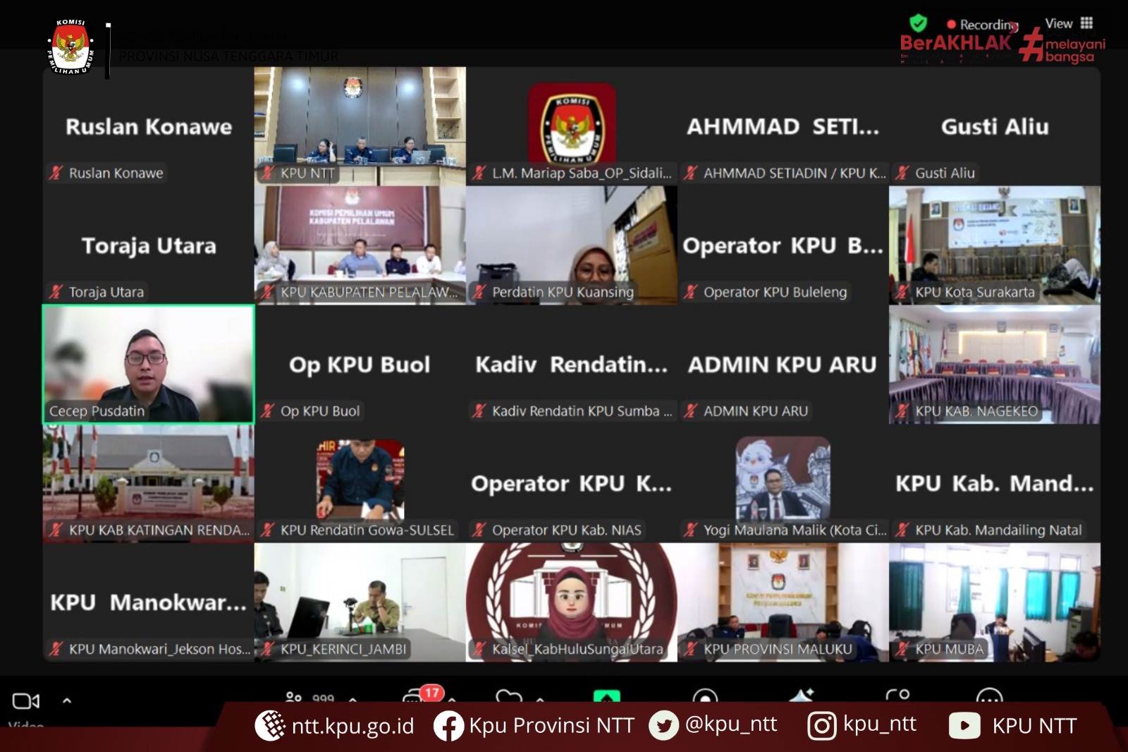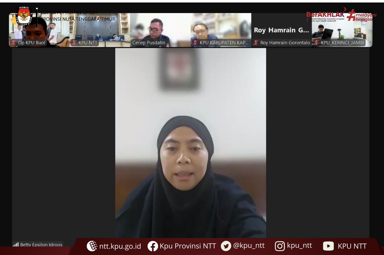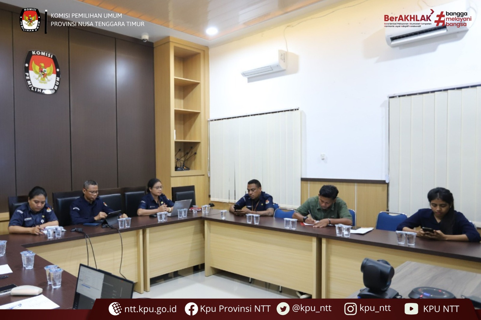 #TemanPemilih, Selasa (10/06/2025) bertempat di Ruang Media Center Kantor KPU Provinsi Nusa Tenggara Timur (NTT), Anggota KPU Provinsi NTT, Lodowyk Fredrik, didampingi oleh Kepala Bagian Perencanaan, Data dan Informasi Melanie Sari Willa Hege, serta Kepala Sub Bagian Perencanaan, Data dan Informasi Lusia A.D.P. Hekopung, mengikuti kegiatan Bimbingan Teknis (Bimtek) Lanjutan Mekanisme Tindak Lanjut Data Pemilih Berkelanjutan (PDPB). Kegiatan ini diselenggarakan oleh KPU RI secara daring melalui Zoom Meeting.