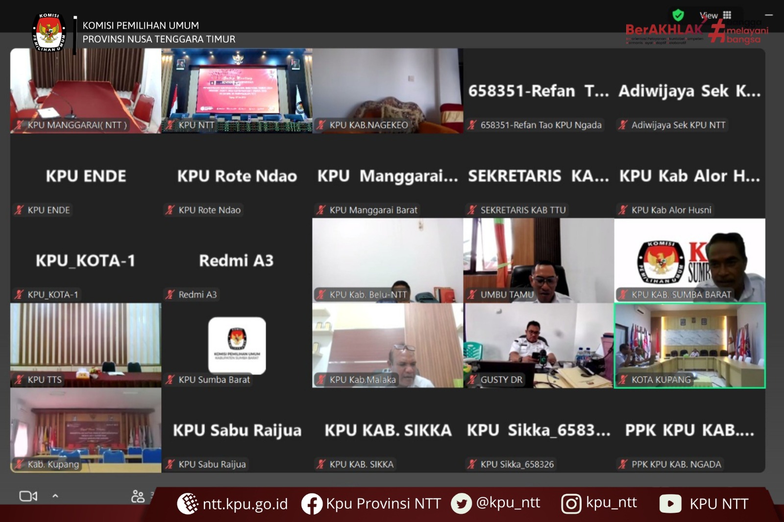 Turut hadir secara daring, Sekretaris KPU Provinsi NTT, Bapak Adiwijaya Bakti serta Sekretaris KPU Kabupaten/Kota se-NTT.