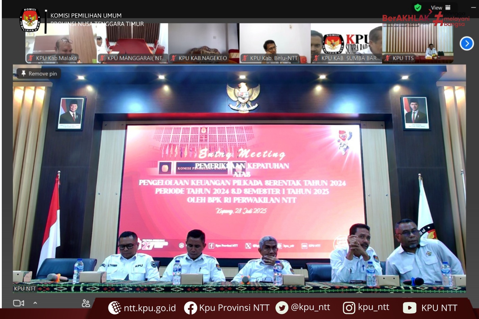 Adapun kunjungan tersebut adalah dalam rangka pelaksanaan Kegiatan Entry Meeting Pemeriksaan Pendahuluan Kepatuhan atas Pengelolaan Keuangan Pilkada Serentak Tahun 2024 Periode Tahun 2024 s.d Semester 1 Tahun 2025. Kegiatan ini dihadiri oleh Bapak Zakaria Ismail selaku Pengendali Teknis, Ibu Kadek Inten Sari selaku Ketua Tim beserta Anggota Tim, juga dihadiri oleh Kepala Bagian dan Sub Bagia beserta Staf Pengelola Keuangan KPU Provinsi NTT.