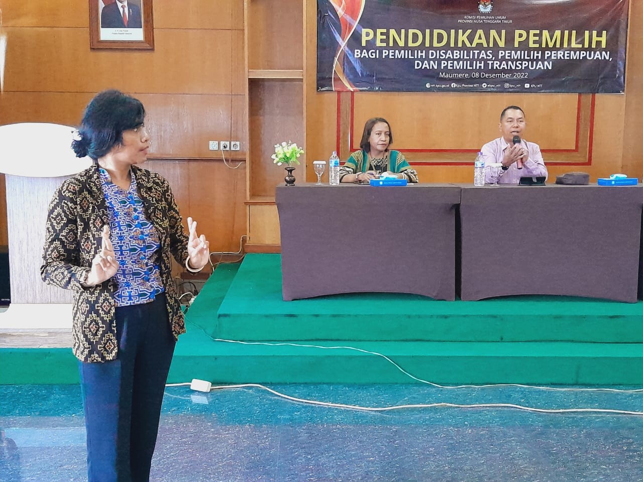 Maumere - Komisi Pemilihan Umum Provinsi NTT menggelar Pendidikan Pemilih bagi kaum disabilitas, perempuan dan Transpuan di Aula Hotel Sylvia, Maumere, Kabupaten Sikka, Kamis (08/12/2022).