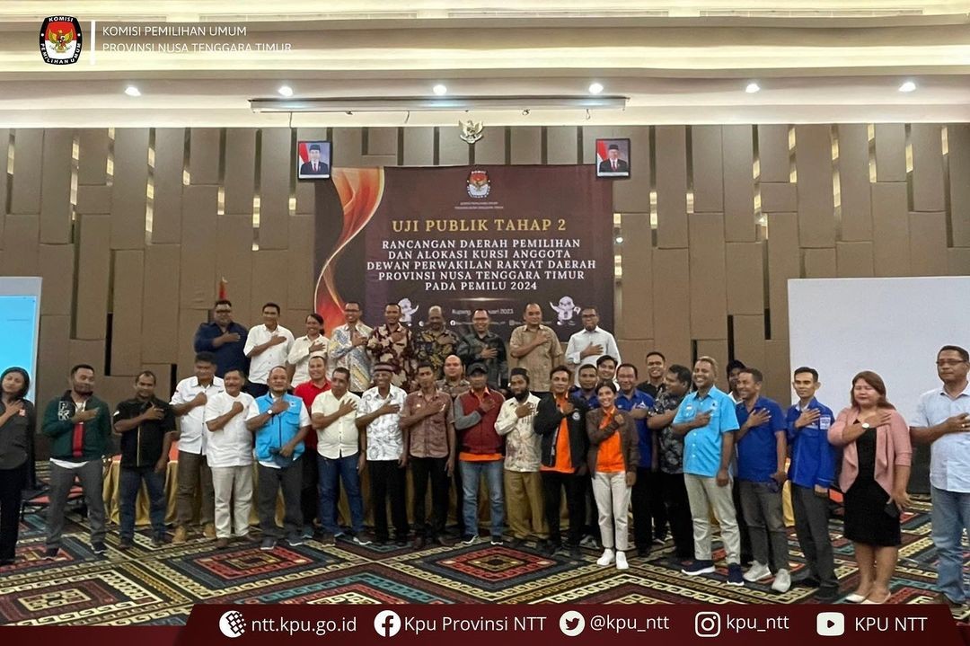 Pada uji publik tahap 1 KPU Provinsi NTT menghadirkan pimpinan Forkompida, pemimpin umat beragama, perwakilan Ormas, Ormawa, Akademisi, tokoh perempuan, dan perwakilan LSM di Kota Kupang. Sementara uji publik tahap 2 dilakukan pada hari yang sama dengan peserta Bawaslu Provinsi NTT, pimpinan Partai Politik peserta Pemilu 2024, dan media massa baik cetak/elektronik dan media online lokal.