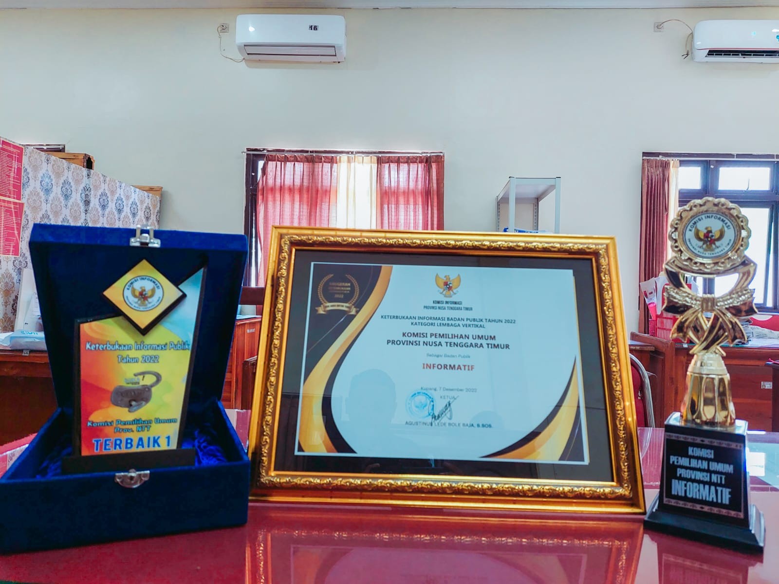 KPU Provinsi Nusa Tenggara Timur menerima penghargaan sebagai Badan Publik Informatif Kategori Terbaik I
