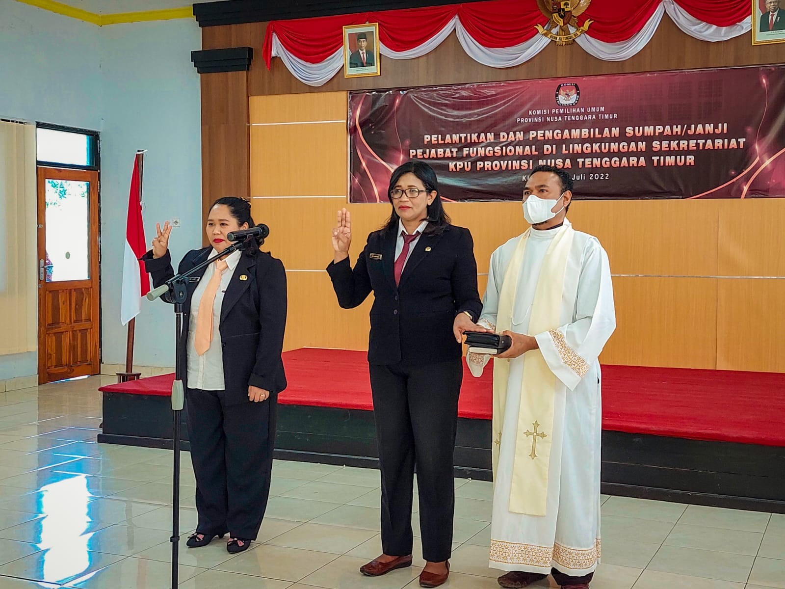 Emersiana Purnawati dan Angeli Lusiana Lake dilantik oleh Inspektur Utama Setjen KPU RI Nanang Priyatna secara daring. Selain staf pelaksana KPU Provinsi NTT juga dilakukan pelantikan staf Pelaksana KPU Kabupaten Flores Timur Bernadete Bare Herin sebagai Pranata Komputer Mahir, Mimi Normianti Unbanunaek sebagai Analis Hukum Ahli Pertama serta Staf Pelaksana KPU Kabupaten Sabu Raijua Maria Agustini Florence Hurman sebagai Analis Hukum Ahli Pertama.