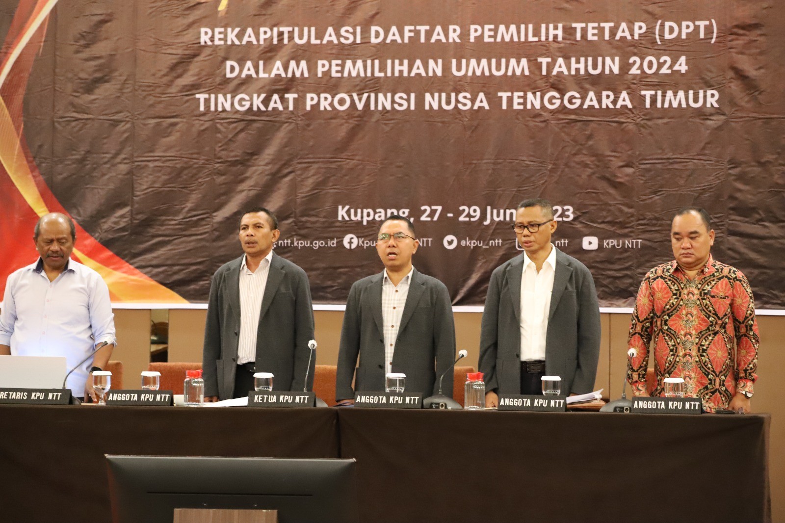 Kupang, KPU Provinsi NTT menetapkan jumlah pemilih di Nusa Tenggara Timur sebanyak 4.008.475 terdiri dari laki-laki 1.971.831 dan perempuan 2.036.644, pada Rapat Pleno Terbuka Rekapulasi Daftar Pemilih Tetap (DPT) Tingkat Provinsi Nusa Tenggara Timur di Hotel Aston Kupang, Rabu, 28 Juni 2023.