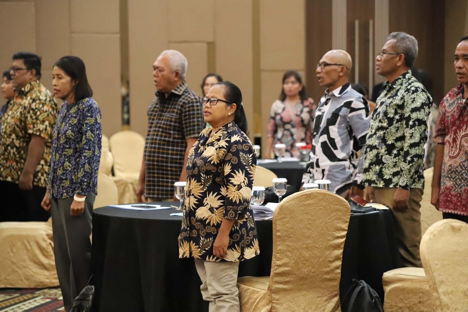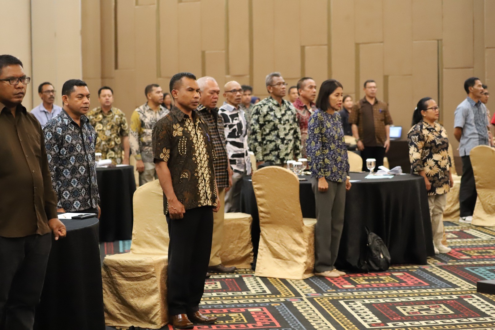 Ketua Divisi Perencanaan, Data dan Informasi Fransiskus V. Diaz memandu pembacaan hasil rekapitulasi daftar pemilih tetap (DPT) dari Kabupaten/Kota yang dibacakan Ketua/Anggota KPU Kabupaten/Kota se-Nusa Tenggara Timur. Rapat sempat diskors atas masukan dari Bawaslu Provinsi NTT untuk mengakomodir pemilih yang yang belum terdaftar dalam DPT dari Kabupaten Sumba Barat Daya.