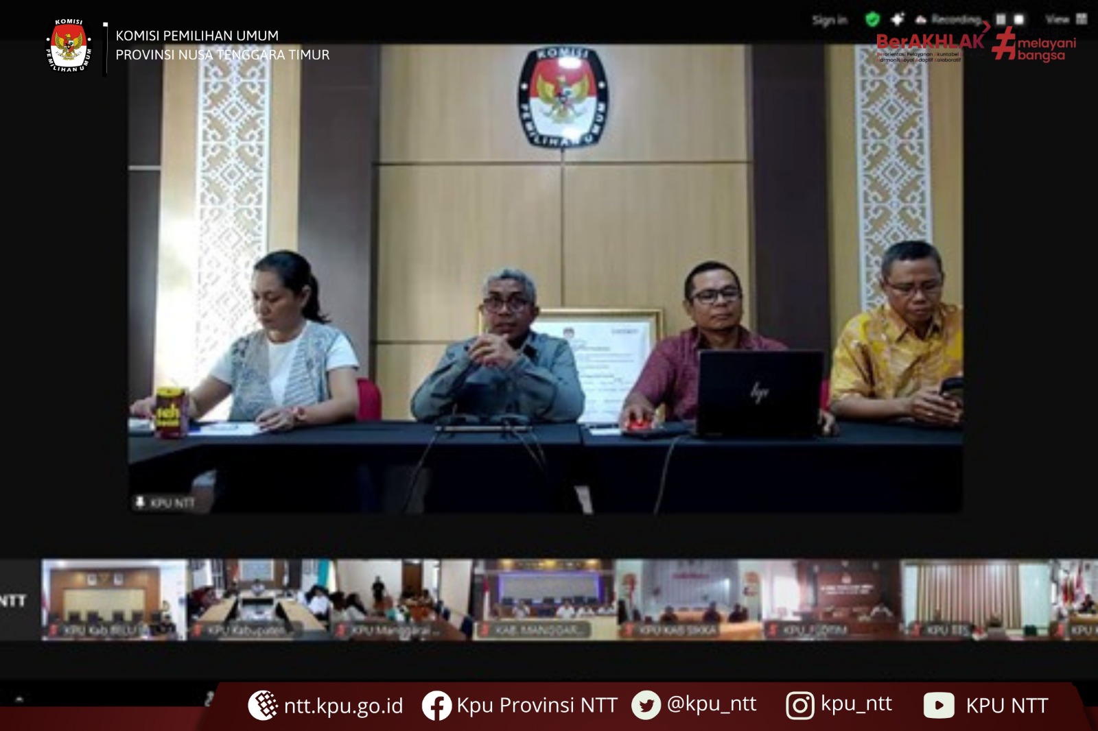 #TemanPemilih, Ketua KPU Provinsi NTT, Jemris Fointuna, memimpin Rapat Koordinasi Pengelolaan Permasalahan Tahapan Teknis Pemilu dan Pemilihan Tahun 2024 yang dilaksanakan secara daring dari Ruang RPP KPU Provinsi NTT pada Jumat, 13 Juni 2025.