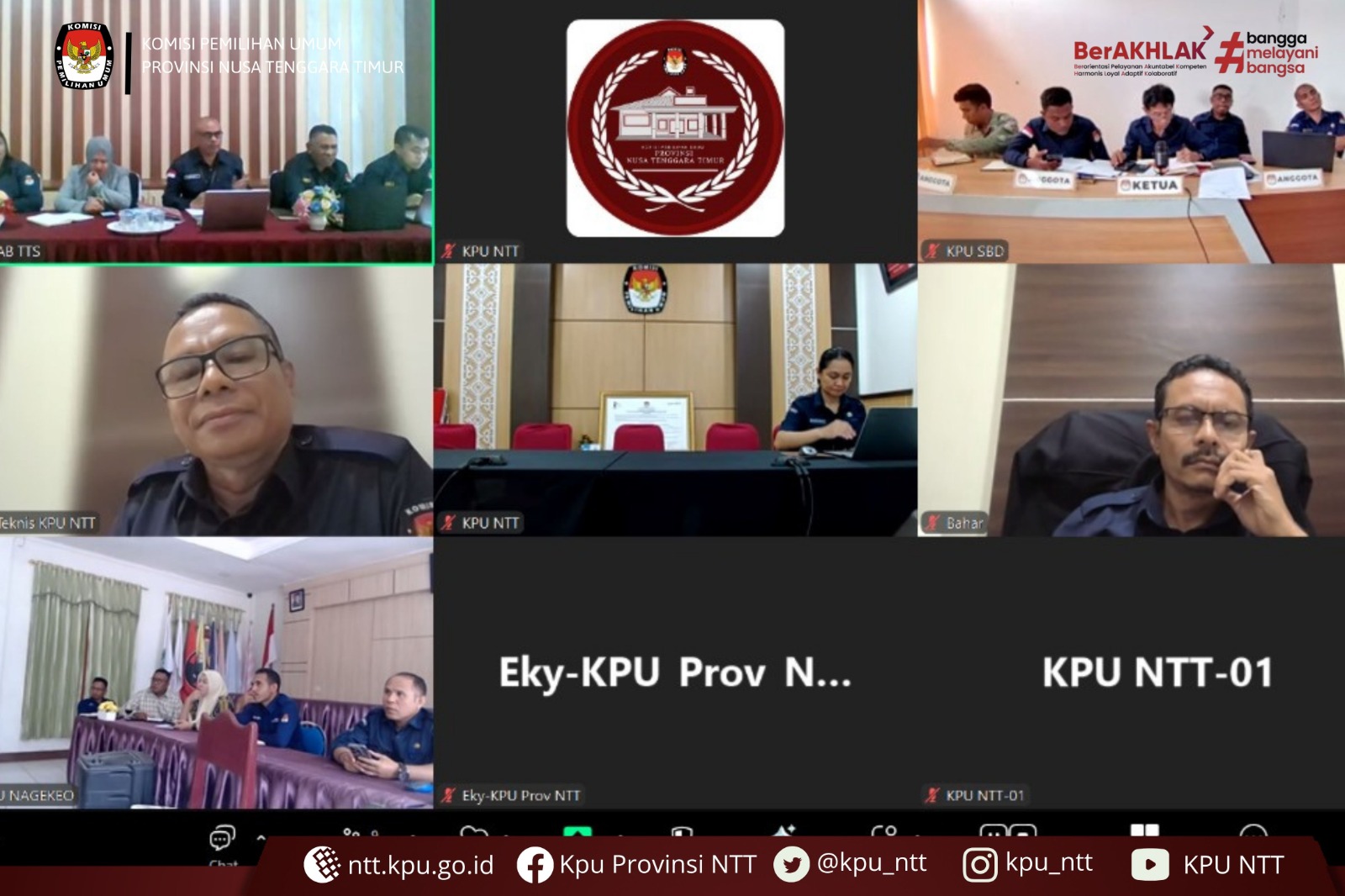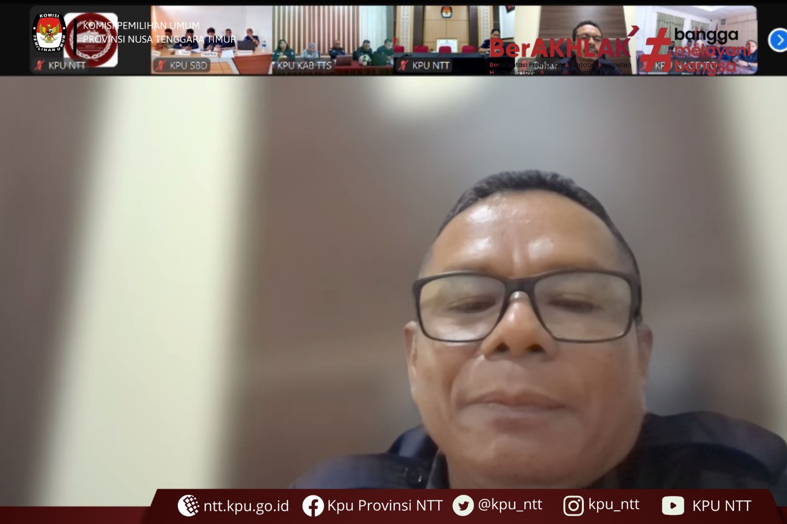 #TemanPemilih, Ketua KPU Provinsi NTT Jemris Fointuna didampingi Anggota KPU Provinsi NTT Elyaser Lomi Rihi, Lodowyk Fredrik dan Baharudin Hamzah, serta Kepala Bagian Teknis Penyelenggaraan Pemilu, Partisipasi, Hubungan Masyarakat, Hukum dan SDM Andrew S. N. Kette mengikuti Rapat Koordinasi Penggantian Calon Terpilih dan Penggantian AntarWaktu Anggota DPRD Kabupaten/Kota secara daring di kantor KPU Provinsi NTT, Selasa (6/5/2025).