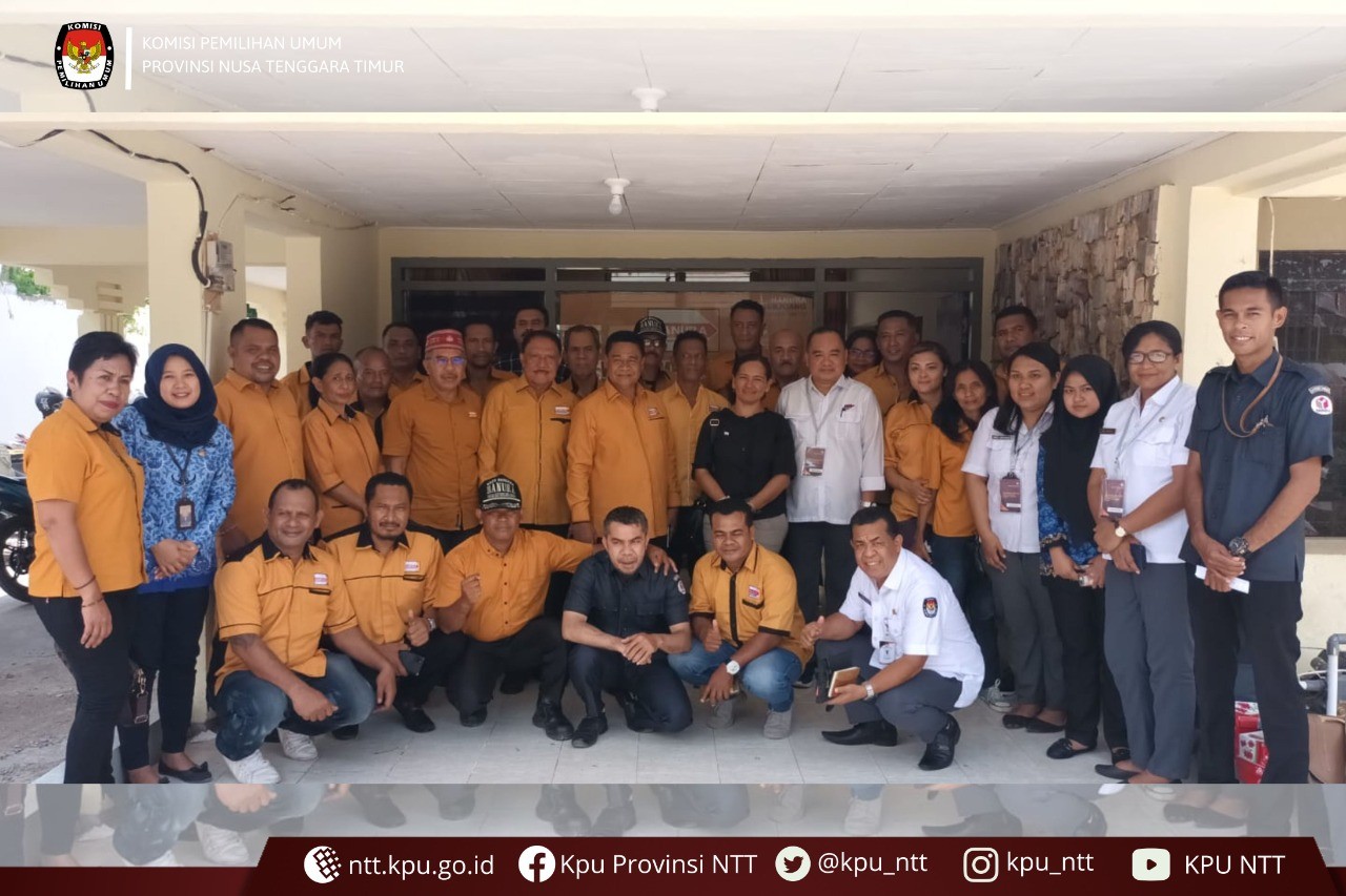 Turut hadir dalam pelaksanaan Verifikasi Faktual Kepengurusan ini Penata Kelola Pemilu Ahli Madya Yosef Hardi Himan, Staf Sekretariat KPU Provinsi NTT dan Anggota Bawaslu Provinsi NTT.