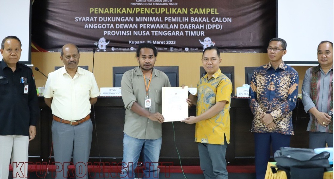 Kupang, kpu.go.id – KPU Provinsi NTT melakukan penarikan dan pencuplikan sampel awal untuk verifikasi faktual tahap kedua dukungan bagi tujuh bakal calon Anggota DPD yang telah dinyatakan Memenuhi Syarat adminstrasi perbaikan tahap kedua. Sabtu (25/3/2023). Penarikan dan pencuplikan sampel dibuka oleh Ketua KPU Provinsi NTT Thomas Dohu bersama Anggota KPU Provinsi NTT Yosafat Koli, Jeffry A. Galla, Lodowyk Fredrik, serta Sekretaris KPU Provinsi NTT Adiwijaya Bakti. Thomas mengatakan, penentuan sampel dilakukan dengan menggunakan metode Krejcie dan Morgan dengan 3 (tiga) barometer yang mewakili alamat, jenis kelamin, dan umur, serta melalui metode ini dapat diketahui pula berapa sampel dan sebaran dukungannya yang akan dilakukan verifikasi faktual tahap kedua oleh KPU Kabupaten/Kota pada tanggal 26 Maret – 8 April 2023. Sementara itu Ketua Divisi Teknis Penyelenggaraan Lodowyk Fredrik menyampaikan bahwa dukungan minimal pemilih ketujuh bakal calon Anggota DPD tersebar di 20 Kabupaten/Kota di NTT. Basis populasi sudah ada sehingga bakal calon dapat menarik sampel dan menentukan nomor urut dukungan yang Memenuhi Syarat, kemudian diturunkan ke Kabupaten/Kota untuk di verifikasi faktual melalui Sistem Informasi Pencalonan (SILON) DPD. Turut hadir, Anggota Bawaslu Provinsi NTT, bakal calon Umbu Wulang Tanaamah Paranggi, penghubung dan admin SILON DPD 6 (enam) bakal calon, media cetak, serta pejabat Eselon III dan IV Sekretariat KPU Provinsi NTT. (Humas KPU Provinsi NTT)