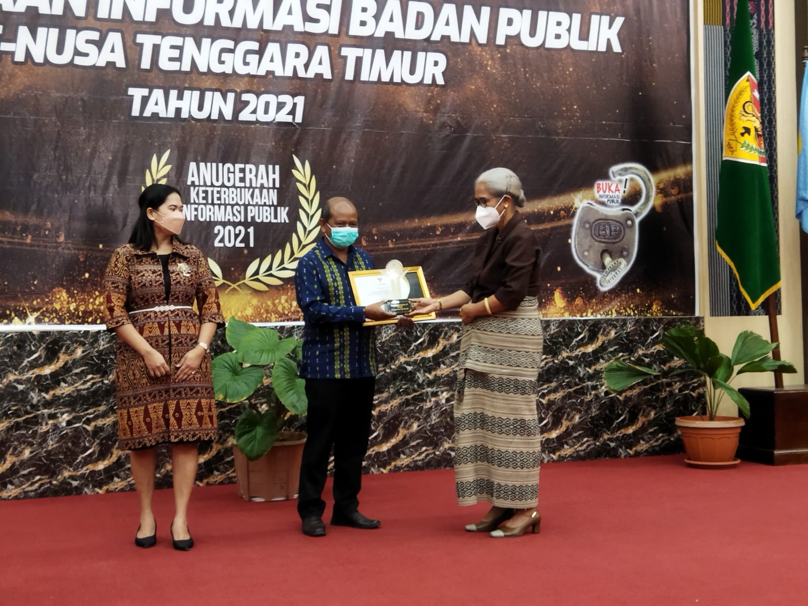 Kupang- (11/11/2021) Komisi Pemilihan Umum Provinsi Nusa Tenggara Timur dinobatkan sebagai Badan Publik Vertikal Informatif Terbaik Tahun 2021 oleh Komisi Informasi Provinsi Nusa Tenggara Timur. Pemberian penghargaan ini dilakukan dalam acara peringatan Hari Hak Untuk Tahu Sedunia dan Penganugerahan Keterbukaan Informasi Badan Publik Se-Nusa Tenggara Timur. Acara berlangsung di Aula El Tari Kupang pukul 10.0 Wita. Piagam dan plakat diserahkan oleh Ketua DPRD Provinsi Nusa Tenggara Timur Emilia Nomleni kepada Anggota KPU Provinsi Nusa Tenggara Timur Divisi Sosdiklih Yosafat Koli. Dalam sambutan Ketua Komisi Informasi Provinsi Nusa Tenggara Timur Agustinus Lede Bole Baja menyampaikan bahwa pemberian penghargaan merupakan implementasi Undang-Undang Nomor 14 Tahun 2008 tentang Keterbukaan Informasi Publik. Pemberian penghargaan dilakukan untuk badan publik vertikal dan di lingkungan pemerintahan Provinsi Nusa Tenggara Timur. Pemberian penghargaan ini melewati beberapa tahapan yakni para komisioner Komisi Informasi Provinsi Nusa Tenggara Timur melakukan supervisi monitoring guna melihat langsung pengelolaan pelayanan informasi dan dokumentasi pada badan publik di wilayah provinsi Nusa Tenggara Timur, pengisian kuisioner terkait keterbukaan informasi publik pada badan publik dan pelaporan pengelolaan PPID yang disampaikan ke Komisi Informasi Provinsi Nusa Tenggara Timur. Pada kesempatan ini Komisi Pemilihan Umum Kabupaten Sikka turut medapatkan penghargaan dengan kategori Badan Publik Cukup Informatif. Pelaksana pada Sekretariat KPU Provinsi Nusa Tenggara Timur Agatha M. Sukmasari Woda mewakili Komisi Pemilihan Umum Kabupaten Sikka menerima piagam yang diserahkan oleh Anggota Komisi Informasi Maryanti L. Adoe.
