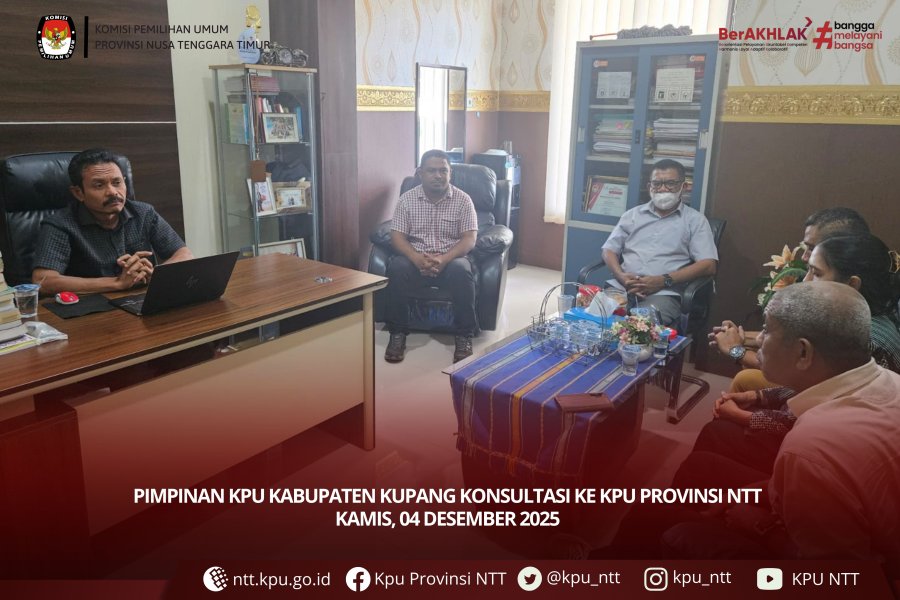 Kupang, ntt.kpu.go.id - Ketua KPU Kabupaten Kupang Nikson Mangoa bersama anggota Samsul Gole, Ines Louk, Polce Amalo dan Klemens Lega Laot Kamis (4/12) siang berkonsultasi ke KPU Provinsi NTT terkait penulisan buku Pemilu dan Pilkada serta sejumlah agenda lain. Konsultasi naskah buku berlangsung di ruangan Anggota KPU NTT Baharudin Hamzah yang juga Ketua divisi Sosialisasi, Pendidikan Pemilih, Partisipasi Masyarakat dan SDM. Dalam pertemuan tersebut Nikson menyampaikan perkembangan penulisan buku Pilkada di Kabupaten Kupang yang sudah final dan siap untuk diporses lebih lanjut ke perpustakaan Nasional. Selain buku, KetuaKPU Kabupaten dua periode ini juga melaporkan perkembangan pemutahiran daftar pemilih berkelanjutan dan proses pencocokan dan penelitian (Coklit) yang sudah selesai dan rencana pleno rekapitulasi di Kabupaten. Hal lain yang juga disampaikan dalam konsultasi terkait proses pergantian antar waktu anggota DPRD Kabupaten Kupang dari beberapa artai politik karena berhalangan tetap. Hal senada juga disampaikan anggota KPU Kabupaten Kupang Samsul Gole. Ketua divisi Teknis penyelenggaraan pemilu itu menambahkan proses coklit data ganda, data invalid dan NIK ganda di kabupaten Kupang yang jumlahnya lebih dari seribu pemilih. Demikian juga proses PAW anggota DPRD yang kemungkinan akan terjadi dalam waktu dekat karena ada anggota DPRD yang berhalangan tetap. Selain konsultasi, para pimpinan juga melaporkan program Pendidikan pemilih KPU mengajar di KabupatenKupang dan berharap tahun depan segmen pemilih kelompok masyarakat luas akan digarap. Sementara itu anggota KPU NTT Baharudin Hamzah dalam kesempatan tersebut menegaskan, proses pergantian antar waktu mesti dilakukan sesuai kerangka hukum yang ada, termasuk merujuk Peraturan KPU No 3 tahun 2025. Prinsip pergantian antar waktu tegas Bahar, partai politik aktif mengajukan proses melalui DPRD setempat. Sedangkan posisi KPU menunggu untuk menindaklanjuti sesuai ketentuan dimana calon yang memperoleh suara terbanyak urutan berikut yang akan diajukan untuk PAW. Demikian juga terkait pemutahiran daftar pemilih berkelanjutan harus mengedapankan aspek normative yuridis. Sedangkan terkait buku Pilkada, Bahar berharap proses teknis disegerakan akan diakhir tahun ini buku Pilkada yang merekam seluruh proses pemilu maupun Pilkada di Kabupaten Kupang sudah bisa dicetak. Diujung pertemuan, Bahar mengajak pimpinan KPU Kabupaten Kupang agar tetap menjaga soliditas tim kerja, termasuk displin dan harus jadi tauladan bagi jajaran sekretariat.
