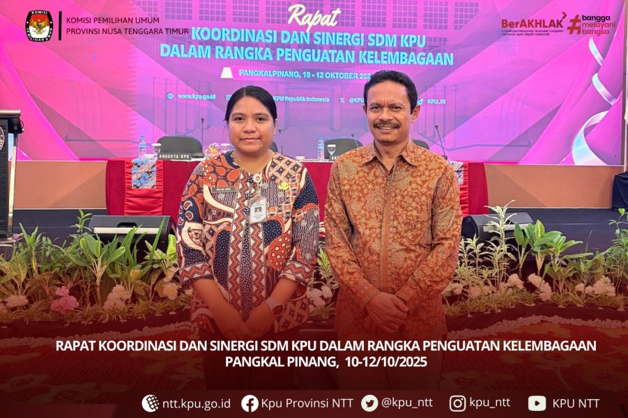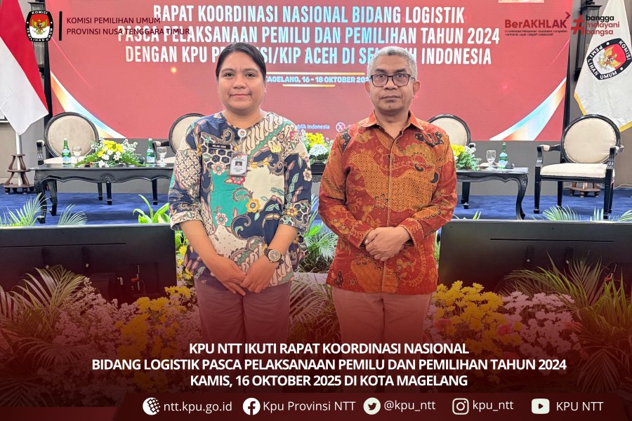 Kupang, ntt.kpu.go.id — KPU Provinsi Nusa Tenggara Timur turut serta dalam Rapat Koordinasi Nasional (Rakornas) Bidang Logistik Pasca Pelaksanaan Pemilu dan Pemilihan Tahun 2024 yang diselenggarakan oleh Komisi Pemilihan Umum Republik Indonesia di Kota Magelang pada Kamis (16/10). Kegiatan ini dihadiri langsung oleh Ketua KPU Provinsi NTT Jemris Fointuna dan Plt. Sekretaris KPU NTT Melanie S.W. Hege. Rakornas dibuka oleh Ketua KPU RI Mochammad Afifuddin, didampingi Anggota KPU RI Yulianto Sudrajat, Idham Holik, dan August Mellaz. Dalam sambutannya, Afifuddin menyampaikan apresiasi tinggi atas kerja keras jajaran pengelola logistik di seluruh Indonesia. Ia menegaskan bahwa pada Pemilu dan Pilkada Serentak 2024, tidak ada kendala logistik yang menyebabkan penundaan pemungutan suara, sebuah capaian penting dalam manajemen logistik pemilu nasional. Di sisi lain, Idham Holik menyoroti pentingnya penyimpanan arsip logistik secara tertib di setiap satuan kerja KPU provinsi dan kabupaten/kota. Arsip tersebut menjadi sumber data penting dalam penyusunan kebijakan serta perbaikan tata kelola logistik pemilu mendatang. Sementara itu, Yulianto Sudrajat dan August Mellaz menekankan perlunya inovasi serta penguatan kapasitas SDM logistik, terutama untuk menghadapi tantangan geografis di wilayah kepulauan dan daerah sulit jangkau. Setelah sesi arahan pimpinan, Rakornas menghadirkan narasumber pertama Nur Wakit Aliyusron (Kepala Biro Logistik KPU RI). Ia membahas transformasi tata kelola distribusi logistik pemilu dan pemilihan tahun 2024 serta sejumlah isu strategis nasional dalam evaluasi pengelolaan logistik pemilu dan pilkada. Narasumber kedua, Brisma Renaldi (Widyaiswara Ahli Utama dari Lembaga Administrasi Negara Republik Indonesia), menyoroti pentingnya penguatan kapasitas aparatur dalam mendukung transformasi tata kelola distribusi logistik hingga ke tingkat TPS. Menurutnya, strategi distribusi yang adaptif, efisien, dan kolaboratif menjadi kunci penyelenggaraan pemilu yang tepat waktu dan berkualitas. Rakornas juga menghadirkan narasumber dari Badan Riset dan Inovasi Nasional serta Kementerian Perhubungan Republik Indonesia yang memberikan perspektif terkait pemanfaatan teknologi dan penguatan rantai distribusi logistik nasional melalui kolaborasi lintas sektor. Kehadiran KPU NTT dalam Rakornas ini menjadi bagian dari komitmen memperkuat sistem logistik pemilu di wilayah kepulauan yang memiliki tantangan geografis tersendiri. Pengalaman Pemilu dan Pemilihan 2024 menjadi pelajaran penting untuk memperkuat kesiapan logistik secara sistematis, terutama dalam perencanaan dan distribusi ke daerah sulit jangkau. Melalui kegiatan ini, KPU NTT berupaya memperkuat kapasitas dan strategi logistik pemilu sebagai bagian penting dalam mewujudkan penyelenggaraan pemilu dan pilkada yang tepat waktu, transparan, dan berintegritas.