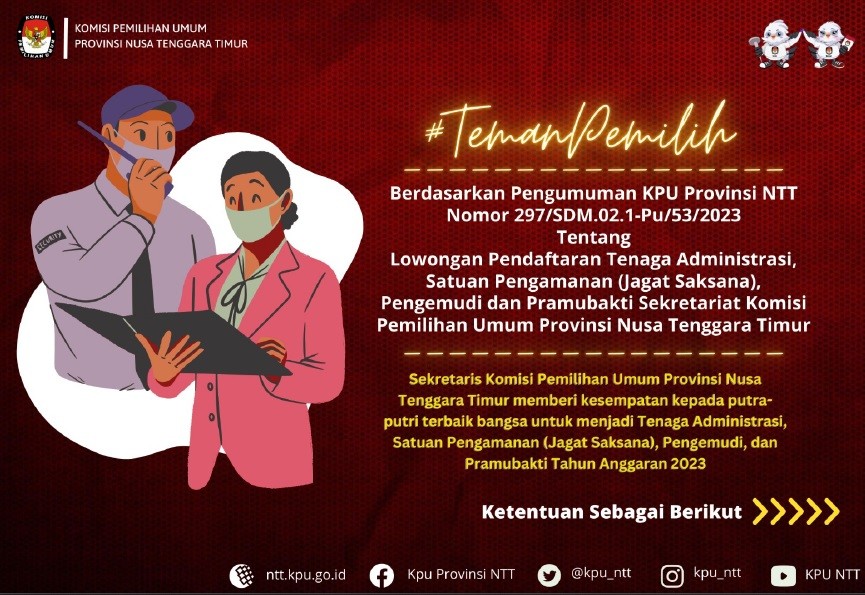 LOWONGAN PEKERJAAN KPU PROVINSI NTT Senin, 20 Februari 2023 07:00 342 Download File Baca Selengkapnya