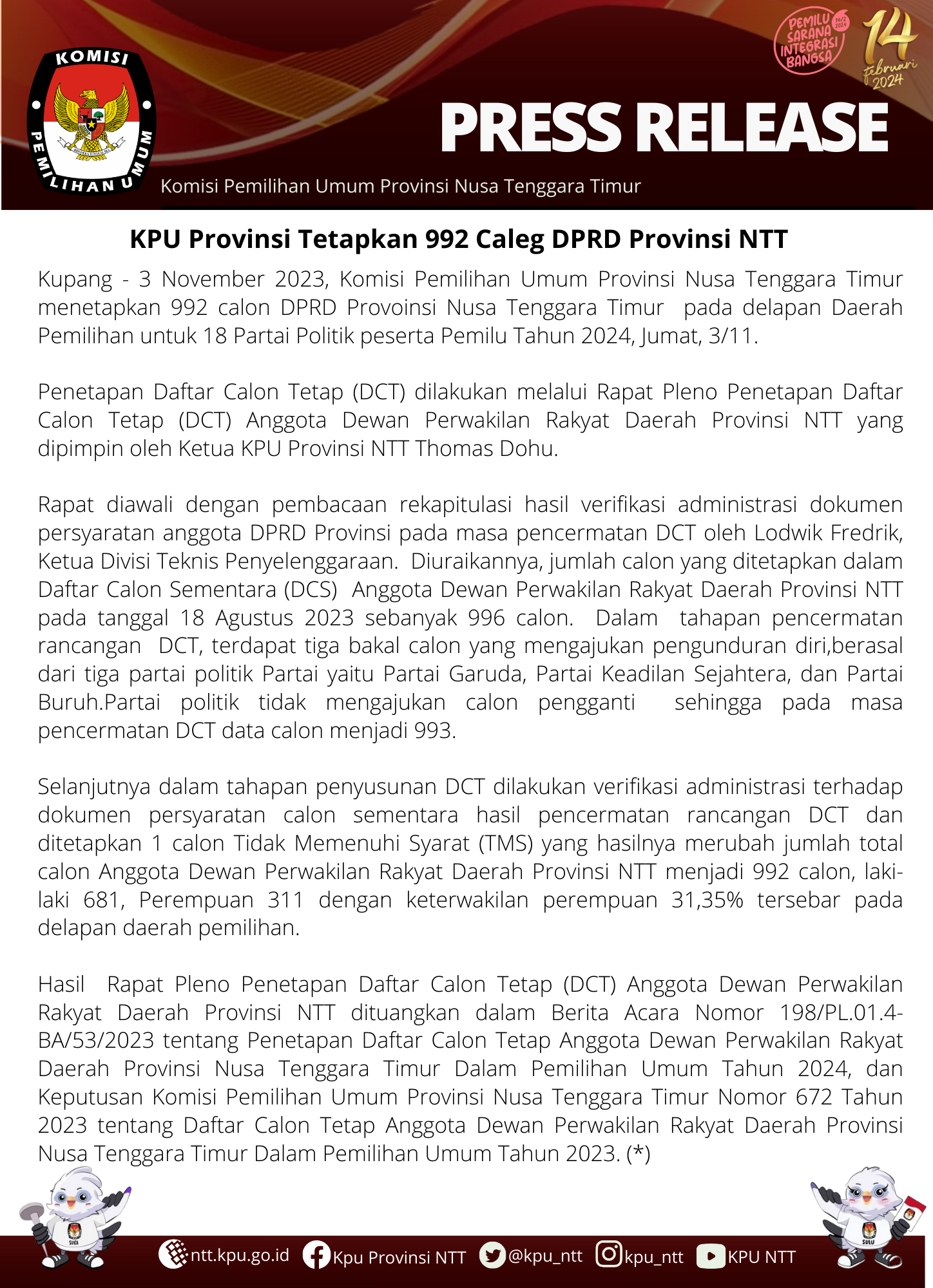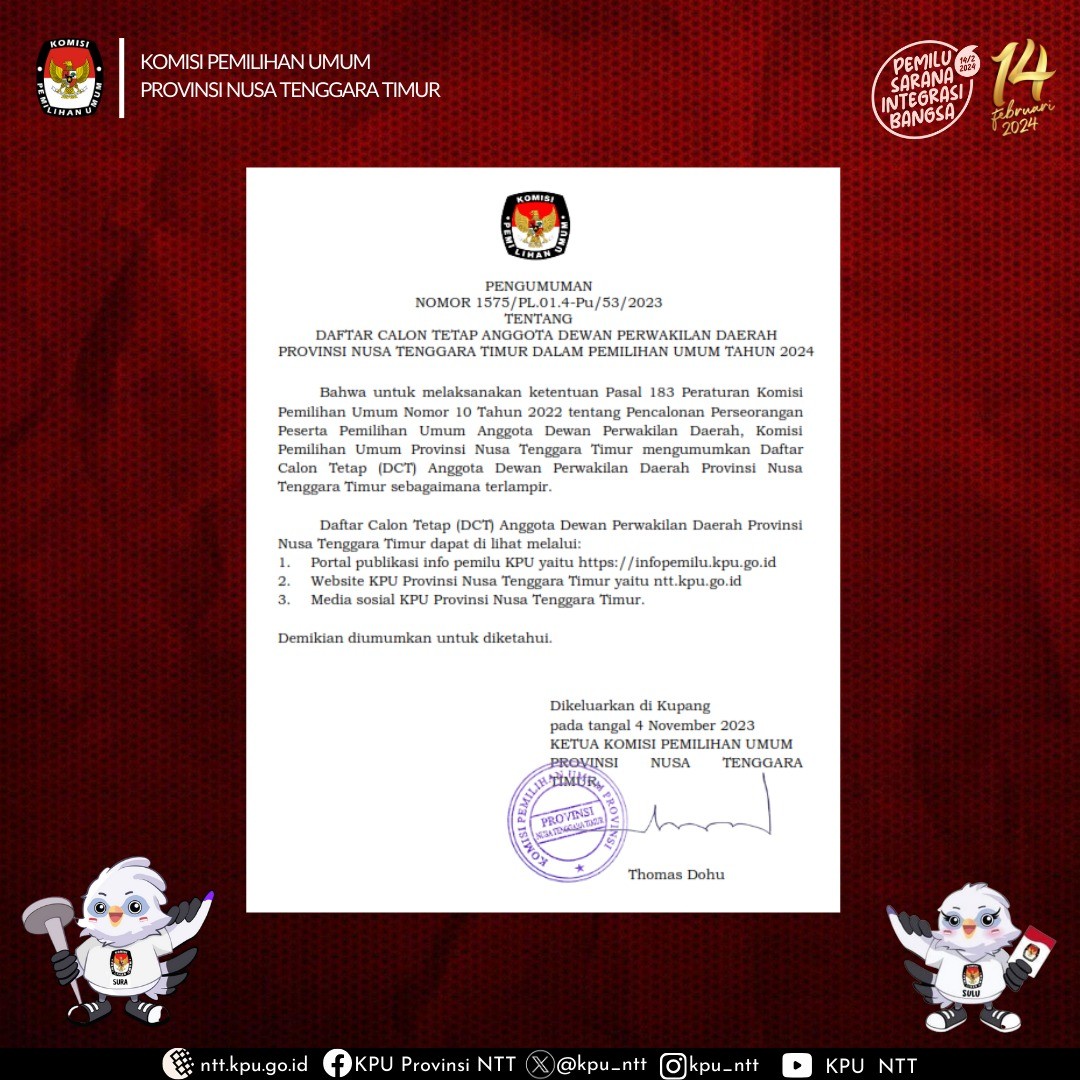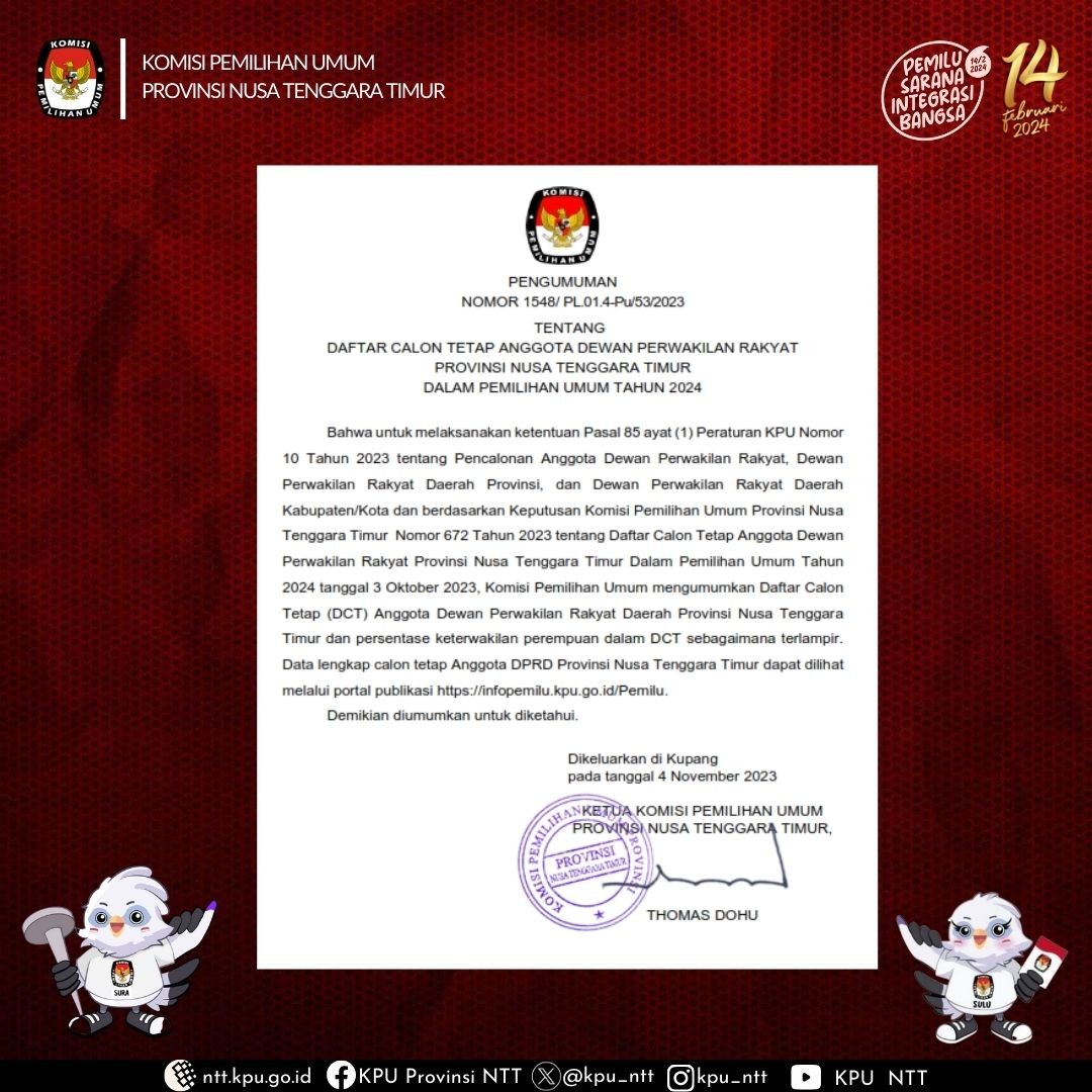 PENGUMUMAN TIM KAMPANYE PASANGAN CALON PRESIDEN DAN WAKIL PRESIDEN TINGKAT PROVINSI NTT DALAM PEMILIHAN UMUM 2024